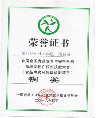 专业特色:国家骨干专业、河南省示范建设重点专业、河南省优秀基层教学组织、漯河市食品智能+专业群骨干专业。