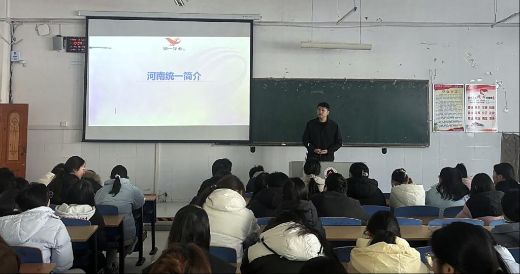 为深化产教融合、搭建优质就业桥梁,助力学子精准择业、高质量就业,12月6日,河南统一企业公司、上海云蒸餐饮管理有限公司等企业走进校园开展招聘宣讲会。本次宣讲会吸引了公司近400名学子到场咨询,现场互动热烈、氛围浓厚。