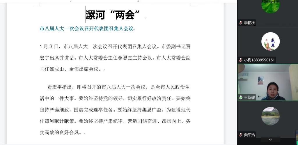 1月16日,食品工程系党总支在线上开展一月份主题党日活动,本次活动由教工支部书记贾娟主持,王新娜副书记带领大家学习,系领导班子和全体党员教师参会。