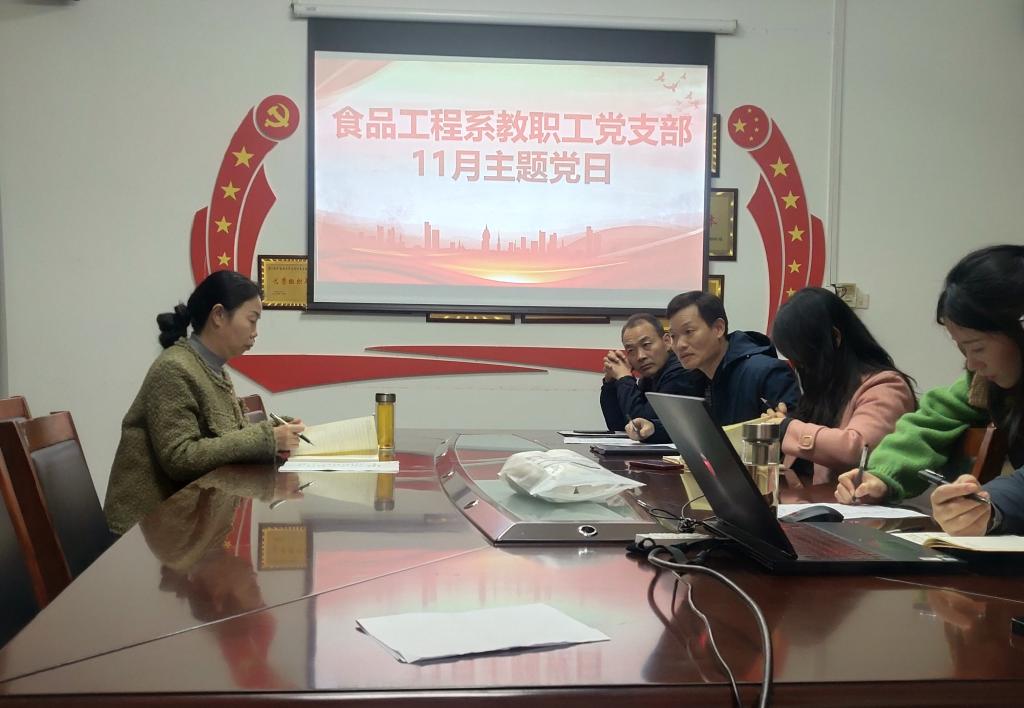 近日,食品工程系教工党支部在系党员活动室召开11月份主题党日活动。本次活动由食品工程系党总支负责人王新娜主持,全体党员参加活动。