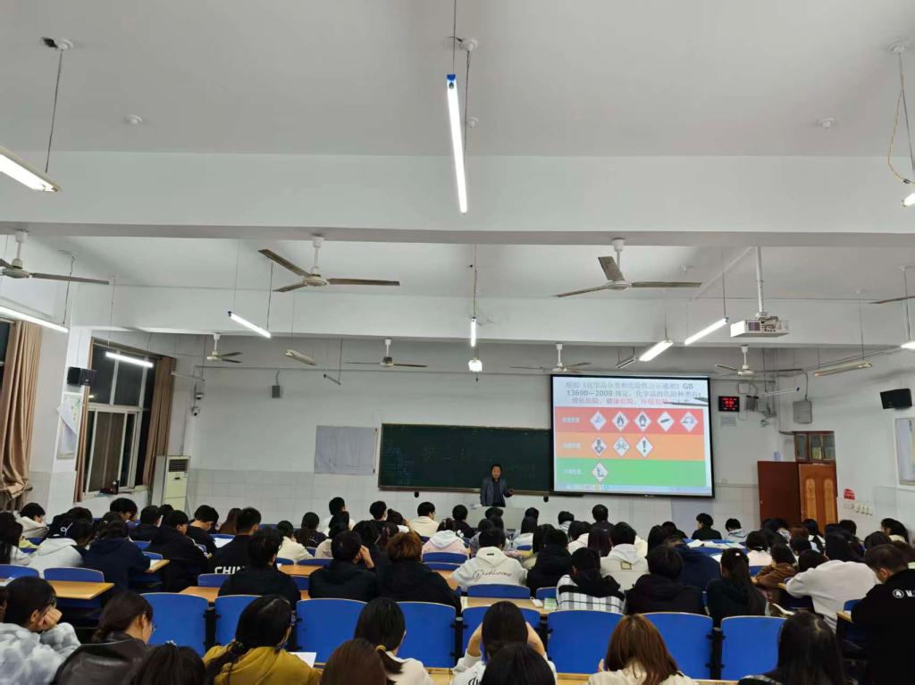 针对食品检验检测专业常接触的危险化学品,黄老师从其分类、储存规范到应急处置,进行了细致讲解,还结合《化学品分类和危险性公示通则》,剖析了各类危险化学品的警示标志,让同学们对危化品风险有了更深入的了解。此外,他还重点介绍了实验室应急喷淋洗眼装置的结构与使用方法,强调其在突发化学品溅洒事故中的关键作用。