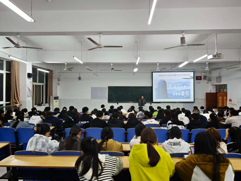 为全面加强校园实验室安全管理,提升广大师生安全防范意识和应急处理能力,营造“安全第一,预防为主”的教学实训环境,利来国际于2025年10月28日晚在三号教学楼3104教室成功举办了题为“筑牢安全防线,守护实验之路”的实验室安全专题讲座。本次讲座吸引了公司的数百名师生踊跃参加,现场座无虚席、反响热烈。