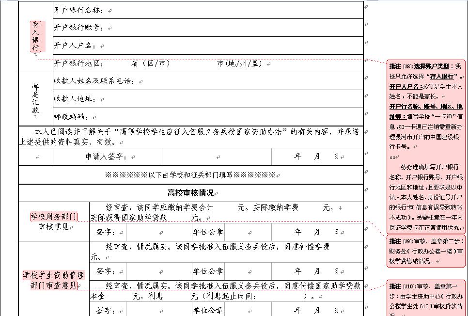高校员工应征入伍学费补偿国家助学贷款代偿申请表填写注意事项