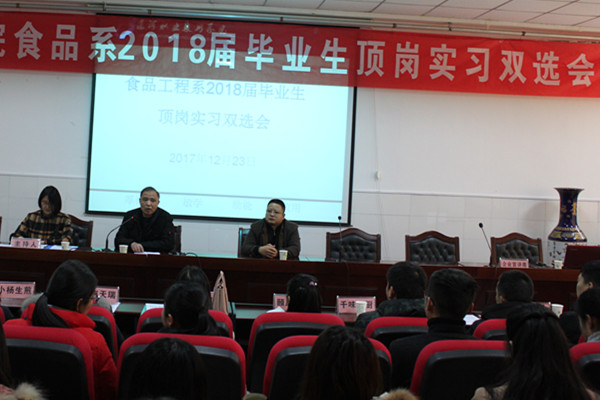 近日,利来w66食品工程系在3101会议室举办了2018届毕业生顶岗实习双选会。有郑州千味央厨食品股份有限公司、郑州市仟吉食品有限公司等28家公司进行招聘宣讲。食品工程系领导班子、教研室主任、辅导员及15级、16级全体员工参加了本次双选会。系主任李文典强调了顶岗实习的目的和意义,明确了顶岗实习的任务和要求。