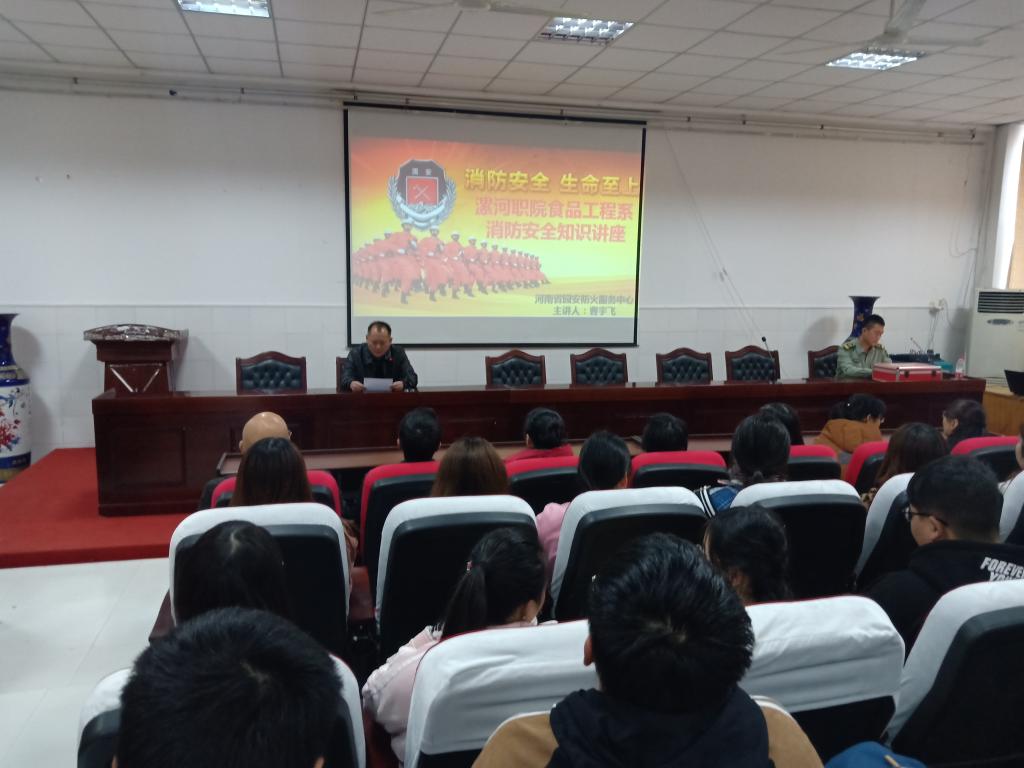 为普及消防安全知识、加强消防安全意识和消防自救技能、营造平安和谐的校园环境, 11月23日,食品工程系在保卫处配合下,邀请河南省消防协会曹宇飞教官开展消防安全知识讲座。保卫处处长王洪克和食品工程系田玉枝书记、食品工程系全体教师和员工代表150余人参加。