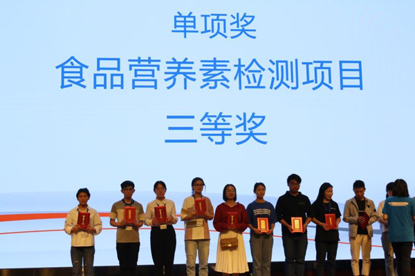本次技能大赛包括农残检测、食品营养素检测和微生物检测共三个赛项,指导老师马川兰、侯鹏飞、杨雯雯分别指导张彬煜、姜丹和赵慧云同学参加了相关项目的比赛。经过激烈角逐,姜丹同学获得食品营养素检测项目三等奖。