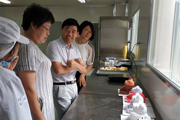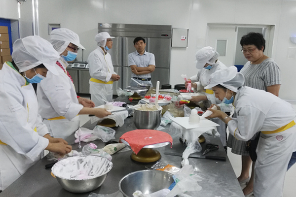 7月11日,食品工程系主任陈思顺、党总支书记田玉枝和副主任崔惠玲一行,前去大匠烘焙看望参与暑期烘焙培训的老师们。当时,面包组正在烘烤面包,烘焙组有的学员在练习挤牡丹花、菊花,有的在装裱毛茸茸的小熊。大家表示,经过近10天的学习,每个人都进步不小,收获很大。