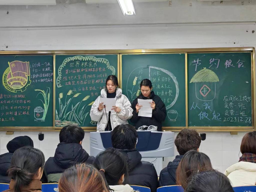 为增强同学们节约粮食,爱惜粮食的意识,培育崇尚节约的校园文化。食品工程系于2023年12月28日举行“节约粮食,从我做起”主题团课活动。