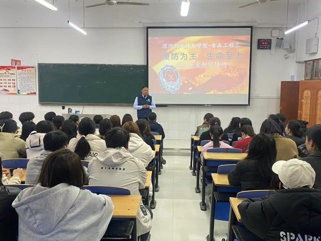本次消防讲座是食品工程系安全教育活动的一部分,旨在加强全院师生的安全意识,提高大家紧急情况下的逃生自救技能,推进平安校园建设,保障全体师生生命财产安全。