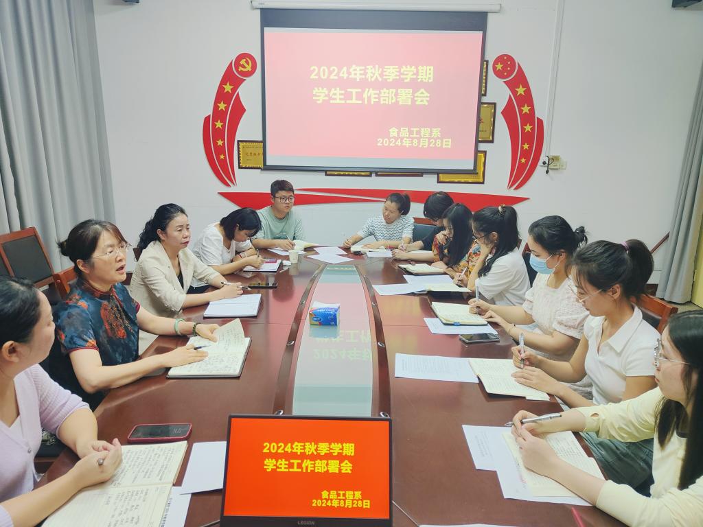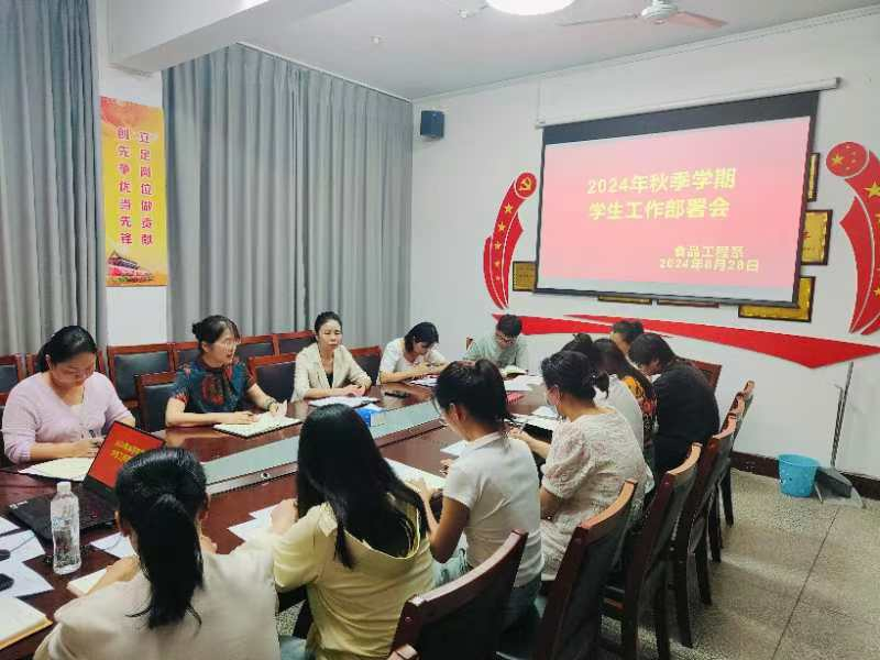 为确保新学期各项工作的有序开展,8月29日下午,食品工程系召开了2024年秋季学期员工工作部署会。食品工程系行政负责人崔惠玲、食品工程系党总支负责人王新娜、食品工程系员工管理负责人卢向飞、食品工程系团总支负责人侯鹏飞,以及全体辅导员参加了此次会议。