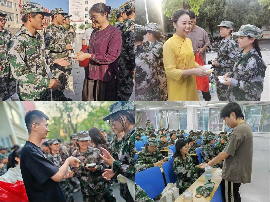 系领导和辅导员来到军训场地,为新生带来了精心准备的月饼和诚挚的节日问候。党总支负责人王新娜对新生们在军训中的表现给予了高度评价。她提出,“希望同学们能继续发扬吃苦耐劳、顽强拼搏的精神,以饱满的斗志圆满完成军训任务,也祝愿大家中秋节快乐,学业进步,迅速成长,快速地融入到食品工程系大家庭,在这里学到知识和本领,度过人生中最美好的三年时光。”