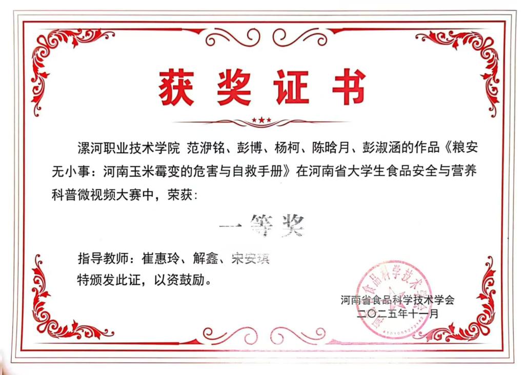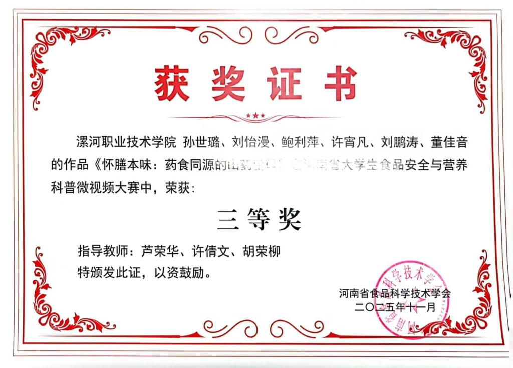 近日,河南省第二届食品安全与营养科普微视频大赛决赛在许昌公司顺利落幕。来自全省各高校的学子围绕食品安全与营养主题展开创意角逐,展现当代青年在科普宣传领域的创新活力。其中,公司利来国际报送作品5件,其中《粮食安全无小事:河南玉米霉变的危害与自救手册》和《怀膳本味:药食同源的山药密码》一举斩获大赛一等奖和三等奖两项殊荣。