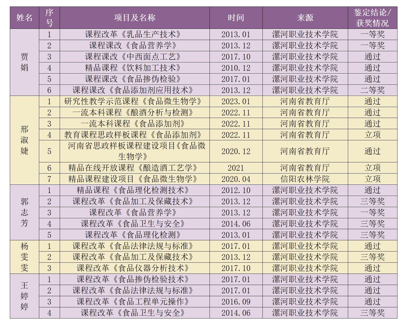 《食品添加剂安全应用技术》课程获奖