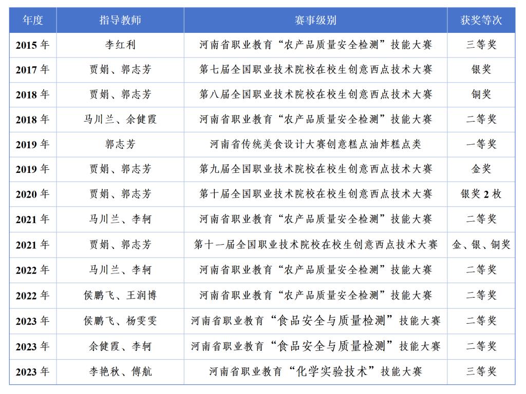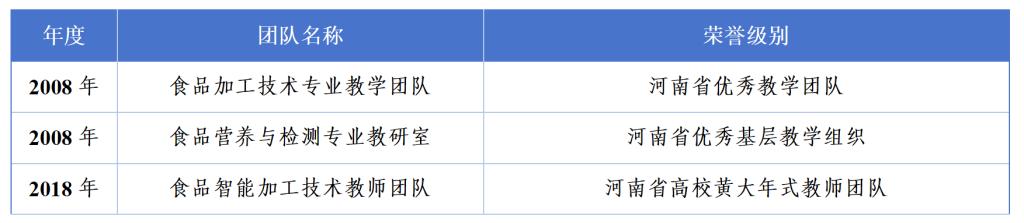 根据专业建设、课程改革、校企合作的实际需要,通过国培、省培、校本培训、下企业锻炼、技能培训、专业建设与课程改革专题培训等多种形式,采取外聘与内培相结合的措施,以专业带头人为引领,以培养骨干教师、提高“双师”结构教师的素质和优化“双师”结构为重点,提升双师素质教师教学与实践能力,目前已经建设成一支教学水平高、实践能力强、结构合理、专兼结合的“双师”结构教师队伍。2008年,食品加工技术专业教学团队获河南省优秀教学团队;2018年食品营养与检测专业教研室被评为河南省优秀基层教学组织;2023年食品智能加工技术教师团队被评为河南省高校黄大年式教师团队;2023年利来国际先后成为河南省轻工纺织骨干职业教育集团检验检测专业建设委员会主任单位、全国农产食品行业产教融合共同体副理事长单位、全国农产食品行业产教融合共同体食品检验检测专业建设委员会主任单位、河南省农产品加工与贮藏工程学会理事单位。